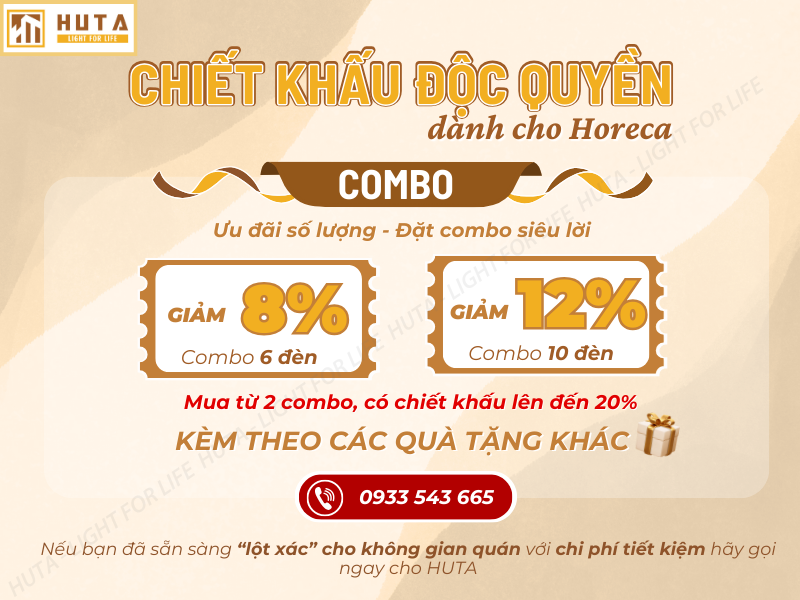 Ngoài vẻ bề ngoài và chất lượng bên trong thì giá đèn bàn quán bar, nhà hàng cũng là một yếu tố để các chủ quán ra quyết định. Hiểu được điều đó tại HUTA Light For Life, các mẫu đèn bàn HORECA được áp dụng chiết khấu hấp dẫn đến 20%, đi kèm quà tặng và nhiều ưu đãi giá trị dành riêng cho khách hàng.