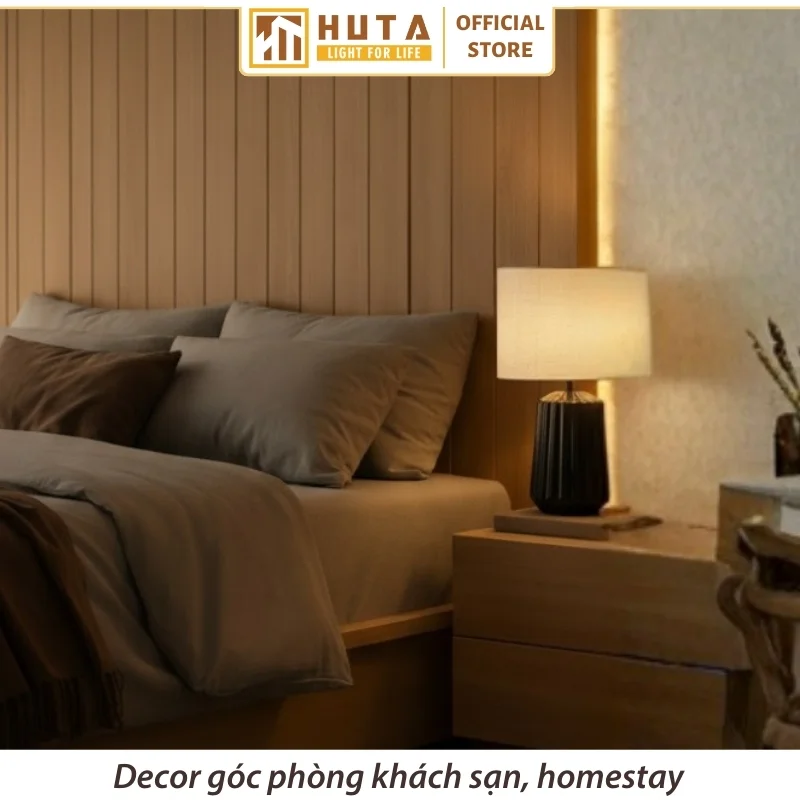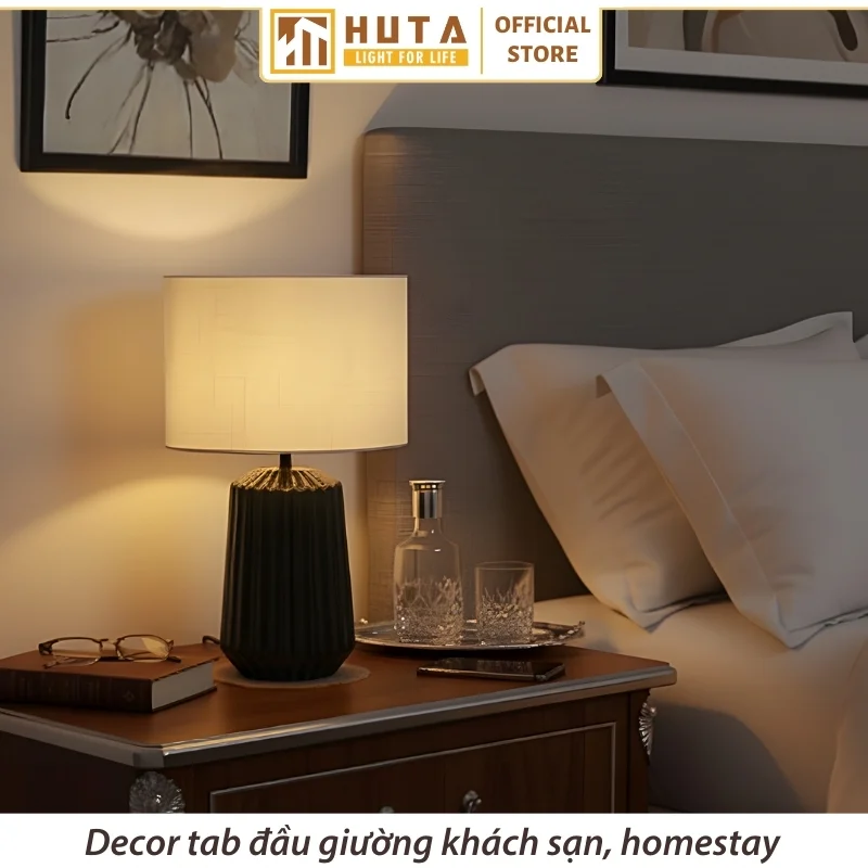 Đèn ngủ để bàn khách sạn sang trọng HUTA Light For Life thân gốm sứ mã S17 là giải pháp chiếu sáng tinh tế cho các không gian lưu trú như khách sạn, homestay hay căn hộ dịch vụ. Ánh sáng vàng ấm dịu nhẹ không chỉ mang lại cảm giác thư thái, dễ chịu mà còn góp phần nâng cao trải nghiệm nghỉ ngơi cho khách hàng.