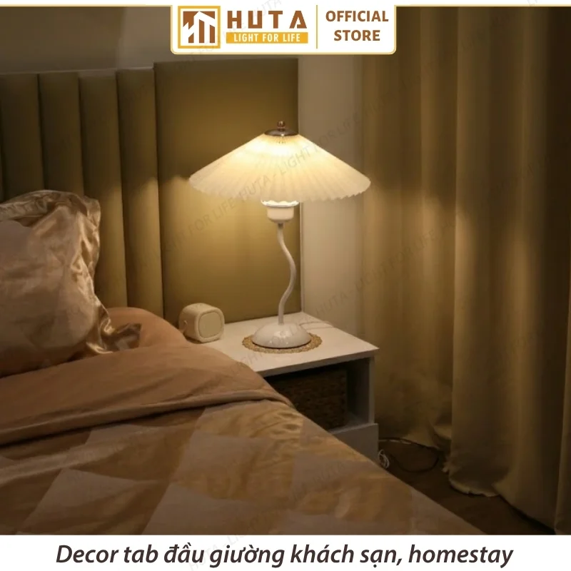 Đèn ngủ để bàn sang trọng decor khách sạn HUTA Light For Life thân kim loại mã T11 là lựa chọn chiếu sáng tinh tế, phù hợp cho các không gian lưu trú như khách sạn, homestay hay căn hộ dịch vụ. Sản phẩm sử dụng ánh sáng vàng ấm dịu, mang lại cảm giác thư giãn, dễ chịu, đồng thời góp phần nâng cao chất lượng nghỉ ngơi cho khách hàng.