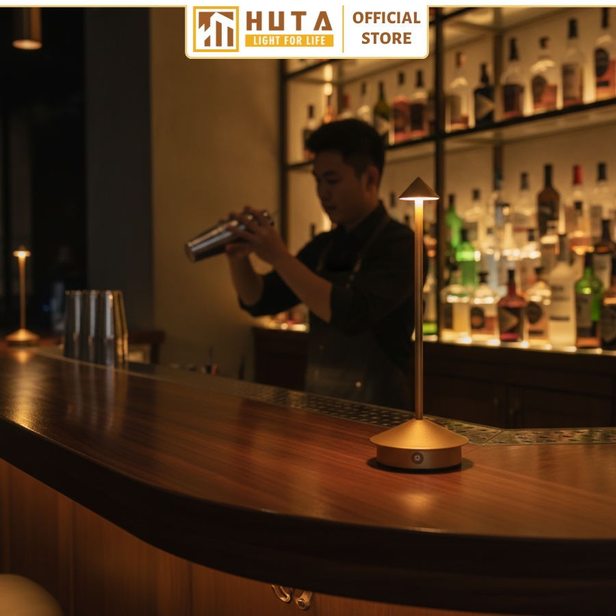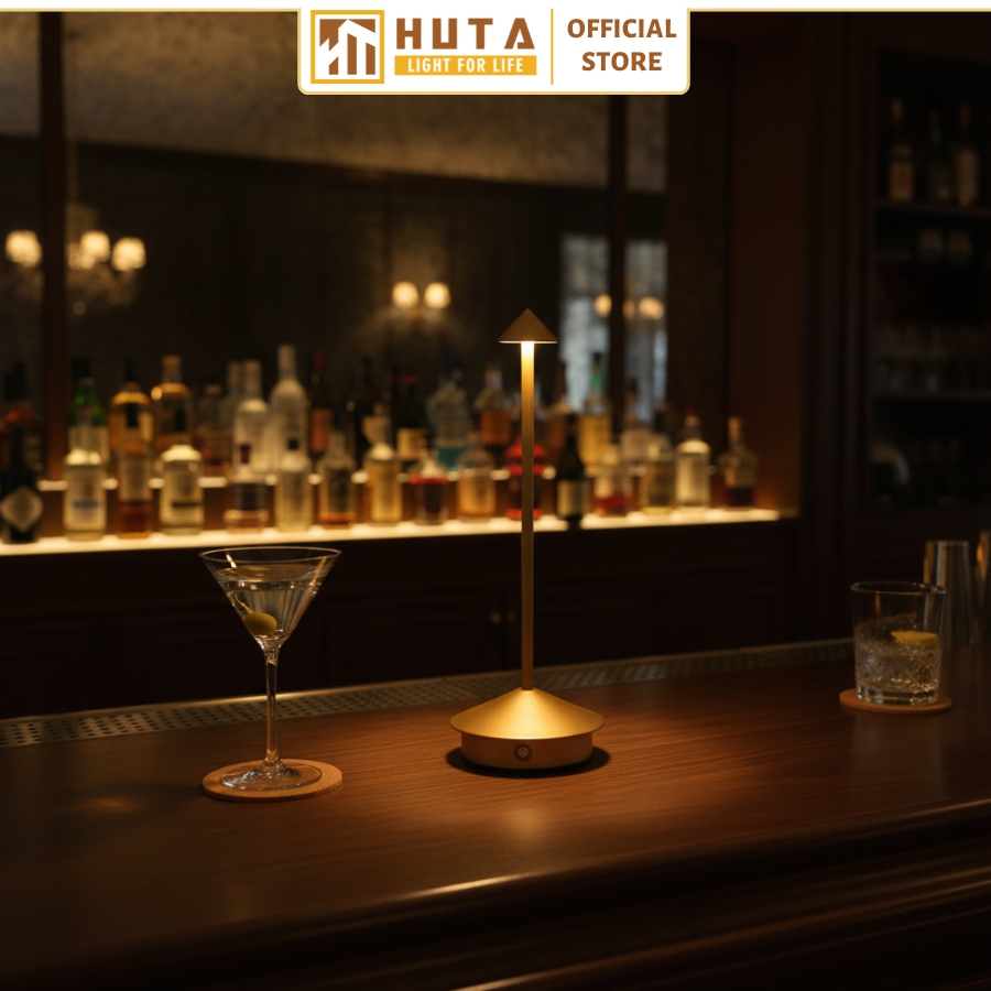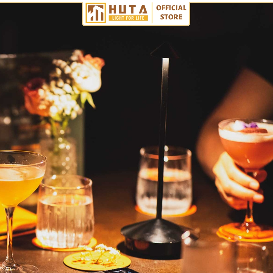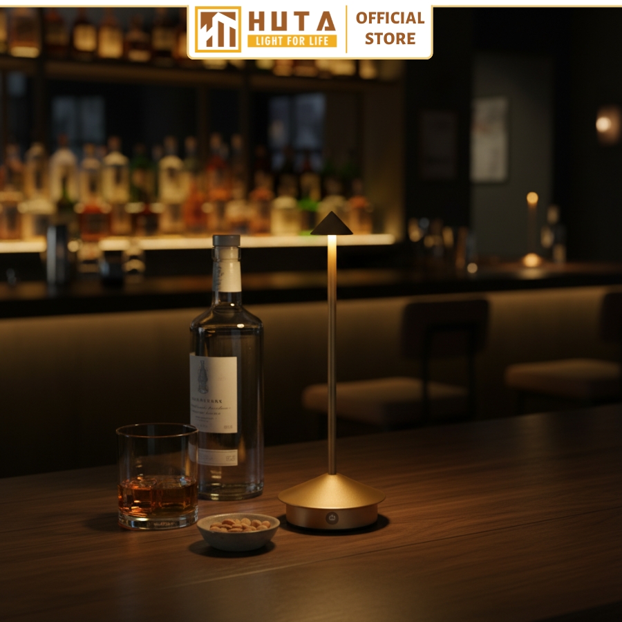 Mẫu đèn bàn pin sạc mã TAMGIAC phù hợp với quán bar như Rooftop Bar, Hidden Bar, Wine,…