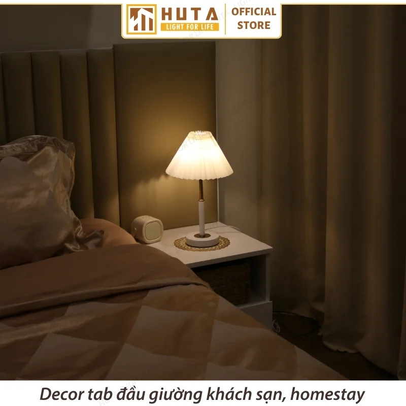 Đèn ngủ để bàn sang trọng decor khách sạn HUTA Light For Life thân kim loại mã T9 là lựa chọn chiếu sáng tinh tế, phù hợp cho các không gian lưu trú như khách sạn, homestay hay căn hộ dịch vụ. Sản phẩm sử dụng ánh sáng vàng ấm dịu, mang lại cảm giác thư giãn, dễ chịu, đồng thời góp phần nâng cao chất lượng nghỉ ngơi cho khách hàng.